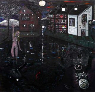L’homme, chez le peintre, cède à ses penchants autodestructeurs et incarne la violence du monde. Sur un mode symbolique, mêlant scénarios de série b et iconographie savante — la baigneuse, par exemple —, juxtaposant cerisiers en fleur et armes à feu, il en dénonce l’essence contradictoire et chaotique. Le noir tend même à imposer sa non couleur dans Lost Light. La femme, au contraire, représentée nue, fait figure d’Eve salvatrice.