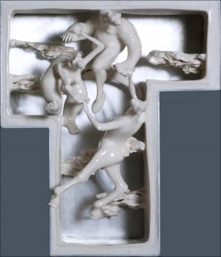 La force des œuvres réside dans le contraste qu’elles exploitent entre la pureté, la délicatesse et le raffinement de leur matériau et la sauvagerie voire la violence des scènes qu’elles représentent. A la blancheur immaculée de la matière, rehaussée par sa brillance, s’oppose l’aspect sombre des personnages modelés. C’est la part sombre de l’homme qui s’exprime, Louise Hindsgavl soulignant à travers ses œuvres que la personnalité humaine ne saurait se réduire aux figurines sans nuance de la porcelaine classique.