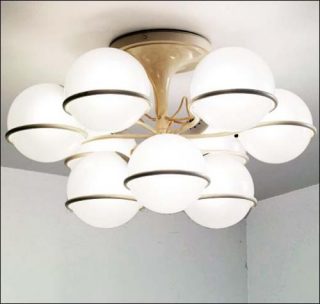 La production industrielle du design et notamment du luminaire se développe largement grâce à de nombreux architectes et designers tels que Giuseppe Ostuni, Tito Agnoli et Joe Colombo, sans oublier Gino Sarfatti. Les foyers italiens s’illuminent. Les formes s’arrondissent, les couleurs s’invitent. On commence à réfléchir aux différentes possibilités d’éclairage: indirecte, par projection, etc. Les luminaires s’équipent de bras, de rotules, leur permettant de bouger dans tous les sens. Les matériaux évoluent également. Les années 1950 saluent l’émergence du plexiglas, de l’aluminium: moins fragiles, plus malléables et plus faciles à produire de façon industrielle.
