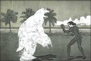 Elaborant une iconographie personnelle, Antoine Dorotte nous présente dans cette exposition son personnage fantasque, «Miranda PaintOMovie, avec un grand O au milieu». Dans une compilation de trois vidéos en boucle, on peut la voir surfer une vague indonésienne dans l’écume de Move it piano, affronter un terrible ours blanc sur une dune lors d’un combat sans fin dans Fiji, ou encore s’agiter au cœur de la tempête caribéenne dans Whirlwind riding.