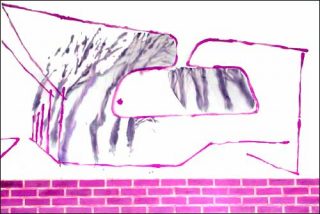 — étant donné « Étant donné » , 2003. Peinture, encre, collage sur toile. 150 x 200 cm environ.