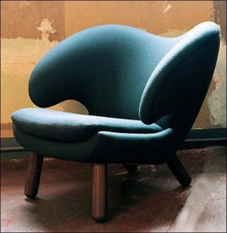 Avec Arne Jacobsen et Hans Wegner, Finn Juhl (1912-1989) est l’un des pères du style moderne danois qui firent de ce pays la nation leader en matière d’ameublement domestique des années 40 au début des années 60. Résultat du juste équilibre entre préceptes modernistes et utilisation des savoir-faire artisanaux, entre lignes fonctionnelles et organiques, la «patte» de Finn Juhl se caractérise par une approche résolument sculpturale. Influencé par le peintre et sculpteur dadaïste Jean Arp, ses premières pièces comme la Pelikan chair (1940) ou le sofa Poeten (1941) sont autant de ruptures stylistiques devenues depuis des monuments à part entière de l’histoire et du patrimoine danois aux côtés de sa célèbre chaise Chieftain (1949). Les matériaux nobles alliés aux formes organiques radicales font de ce mobilier un régal pour l’œil avec un confort d’usage inégalé qui traverse les décennies.