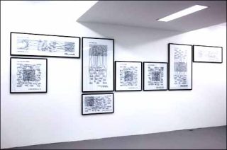 Confortablement assis sur ce vestige de technologie, le visiteur découvre de grands schémas compliqués où des éléments s’imbriquent les uns dans les autres. Cet ensemble intitulé A la recherche du miracle économique reprend des textes fondateurs de la théorie économique, comme ceux de Karl Marx, d’Adam Smith ou de David Ricardo.