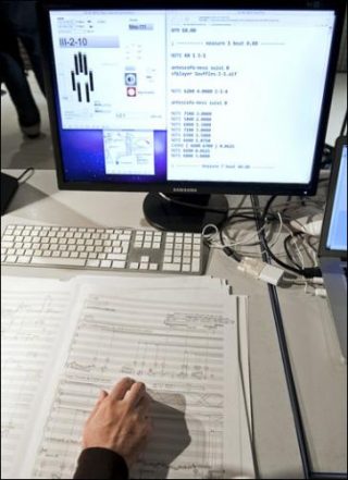 Arshia Cont présentera son système Antescofo, qui réalise un suivi dynamique des interprètes humains par détection des événements sonores et apprentissage en temps réel du tempo. Antescofo permet la synchronisation automatique des parties électroniques sur le tempo humain, supprimant ainsi la fixité des parties électroniques pré-programmées et rendant possible une «interprétation» des musiques de synthèse par les musiciens eux-mêmes.