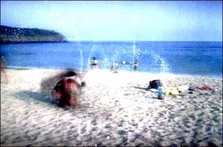 Ce rendu bougé, semi-liquide, donne à la photographie la douceur des réminiscences, ces souvenirs insaisissables que les sensations ravivent par flashs. La luminosité de la plage irradie également toutes ces photographies, provoquant un rendu vaporeux, quasi-pointilliste de la couleur.