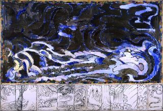 Le parcours est organisé autour de quelques peintures monumentales et de tableaux comportant des notes écrites en marge ou marginalia, telles des enluminures. Ces œuvres témoignent de leur rapport direct avec l’illustration. Ainsi plusieurs tableaux à l’acrylique sur papier marouflé sur toile comme Les Aiguilles. Cette œuvre représentant un paysage de Belle-Île-en-Mer qui avait auparavant intéressé Monet puis Matisse a été réalisée à l’encre et ceinte d’une marginalia à l’acrylique.