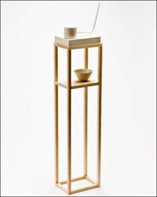 Les objets présentés ont la même ligne rigoureuse, le même dessin soigné, les mêmes matériaux (bois, fils et faïence). Ils semblent s’insérer dans l’espace d’exposition avec délicatesse et précision. L’interaction des différentes pièces d’une même famille instaure un dialogue discret et profond, un silence tonitruant. Le visiteur expérimente chaque objet présenté, mais aussi et surtout leur théâtralité au travers de leur mise en situation.