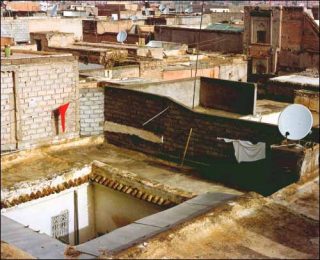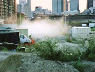 — Downtown Tilt, Zoom and Pan, 2005. Installation : projection mono-écran, super 35mm couleur sur support DVD. 4 min 16 sec.