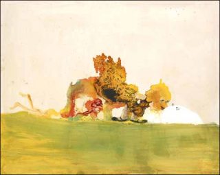 — Paysage au fantôme blanc, 2007. Technique mixte. 24 x 33 cm.