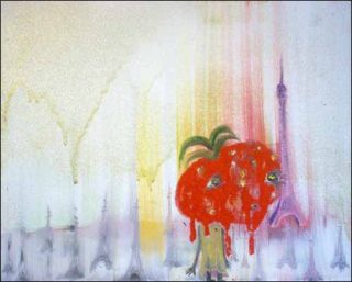 — La fraise aux tours Eiffel, 2007. Technique mixte. 33 x 41 cm.