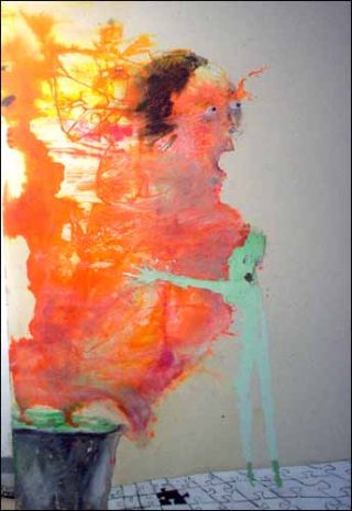 — Le saut orange fluo, 2007. Technique mixte. 195 x 130 cm.