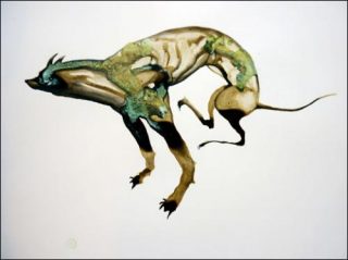 — Lionel Sabatté, Le fuyant regarde la tortue. 2011. Acrylique, huile et vernis sur toile. 130 x 160 cm