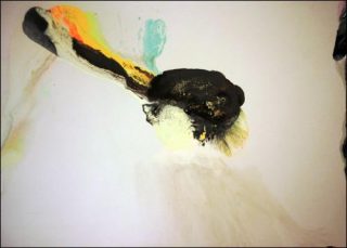 Faire parler la trace, la tache, la poussière, les résidus. C’est tout un art médiumnique sur lequel se concentre la pratique de Lionel Sabatté. Puissamment lié aux forces de la nature, au monde animal et végétal, au monde des hommes mais aussi surtout celui des esprits, l’artiste n’a de cesse de dialoguer avec la matière.