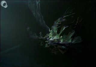 — Lionel Sabatté, La colombe des profondeurs. 2011. Acrylique, huile et vernis sur toile. 89 x 130 cm