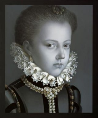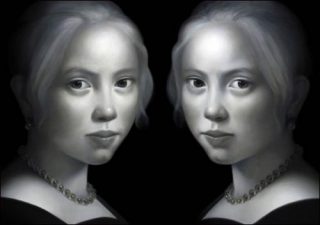 Mirrored Girl est donc un diptyque composé de deux huiles sur toile de 200 x 150 cm chacune, où deux visages se font face comme s’ils étaient séparés par un miroir. Les regards de chacun sont cependant tournés vers le spectateur, l’incitant ainsi à analyser l’image, à percevoir s’il s’agit d’un reflet, à décrypter les infimes différences, les imperceptibles dissymétries qui font que, contrairement à une reproduction mécanique, une image peinte est unique.