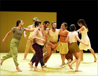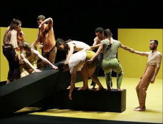 La pièce nous introduit d’emblée dans un monde intriguant, sorte de lieu clos et utopique. En effet, la scène est complètement nue mais encadrée par trois panneaux à la faible luminosité. Les danseurs la traversent lentement, puis prennent leur élan et se laissent glisser, puis dans le même élan se redressent et chutent encore. Comment interpréter ces chutes de corps ? Mass B, véritable point de rencontre de la danse baroque et contemporaine, se fait aussi l’écho de l’actualité la plus récente, celle des mouvements de population animés par l’espoir et la crainte de l’avenir.