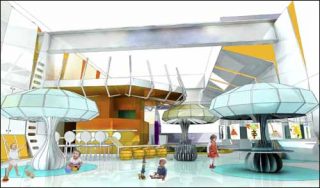 Matali Crasset. Les artistes résidents ont pour obligation d’interagir avec la « Maison des petits ». Ils vont le faire d’une façon que l’on ne saurait prévoir à l’avance. Pour l’instant, on a prévu une plateforme pour eux, et un garde-corps en haut : un prétexte pour pouvoir suspendre des choses et arriver à occuper une grande partie de l’espace, mais chacun à leur manière, ce qui en reste l’intérêt majeur.