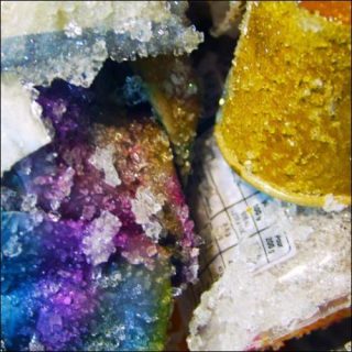 Dans le second cas, le duo Agapanthe met à jour, à travers une série de sculptures cristallisées dans le sucre, les tendances consuméristes et autodestructrices de notre société. Les deux artistes collectent des déchets, des emballages et des rebus de biens de consommation (barre chocolatée, canette, bouteille, etc.), qui soulignent l’abondance et la démesure de l’Occident. On se gave jusqu’à s’en rendre malade, jusqu’à s’en tuer. Ces objets pétrifiés dans le sucre, dont les cristaux scintillent sous les projecteurs de l’exposition, constituent une couche polluante sur le sol de nos villes, de nos paysages. Ils révèlent ainsi une des strates fondamentales de notre présent, celle des résidus et des restes de la surproduction qu’entraine irrémédiablement la chaine de fabrication capitaliste.