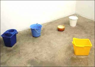 Le public est intrigué, déplacé, voire disposé : de l’intérieur à l’extérieur de la galerie pour éviter les fumées (Feu d’artifice), à l’intérieur de l’espace pour mieux voir l’événement (Domino cascade), etc. Il est (un peu) menacé ou subjugué et ne peut pas tout saisir, physiquement ou parce que le mobile a disparu dans ce jeu de création : personne n’habite l’igloo en blocs de béton, le dégât des eaux est sans causes ni conséquences, le feu d’artifice est livré sans la fête… Où vont les parpaings qui tombent, quand ils tombent en cascade ?