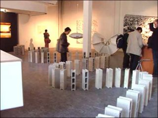 Après expérimentation sur son « chantier », les pièces sont livrées dans leur temps le plus efficace. Dans le cas des parpaings, on peut les récupérer ensuite car ils ne sont jamais figés dans le ciment. La liberté entre ces blocs permet à l’artiste de faire de nouvelles propositions, tout en jouant sur les modalités de présentation : un parquet flottant à la FIAC 2004; un igloo, un mur, une arche dont on peut voir les plans de construction affichés au-dessus des palettes de parpaings, à la galerie Corentin Hamel. Des documents, vidéos notamment, de ses autres travaux sont également consultables.