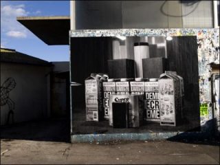 L’usage des supports publicitaires est motivé ici par un principe d’ironie, qui s’apparente et s’appréhende visuellement comme un effet de retournement. Précisément dans la mesure où ces emballages, agencés et photographiés comme des architectures, se retrouveront là où on a l’habitude de vanter ces mêmes produits, c’est-à -dire au milieu des signes publicitaires.