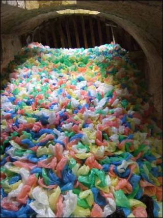 — Plastic Bags, 2008. Sacs en plastique, tissus, filets. Dimensions variables.