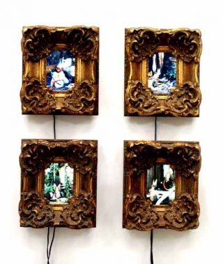 — Sugar and Spice, all things nice. This is what little girls are made of, 2000. Cadre doré, verre, papier, acetate, encre, bois, panneau lumineux. 35,70 x 31 x 10 cm.