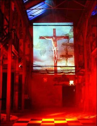 — Madonna, 2002. Céramique, ciment, bois, peinture. 350 x 258 cm.
