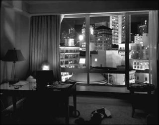Dans Full Moon Rising Over Beaver Bay, les deux uniques sources lumineuses sont l’écran d’ordinateur et la lune, dont la trajectoire forme un segment visible sur l’image. D’une chambre d’hôtel à l’autre, les individus ne sont que des ombres face à de vastes paysages urbains nocturnes : sans consistance face à l’homogénéité de la mégapole, l’être humain est totalement désindividualisé (Calum and Erica). L’abstraction du rectangle de l’écran qui éclaire les scènes hypnotise le regard et revient comme référent visuel d’une image à l’autre, pour constater la réalité de la notion de «civilisation de l’écran» dans laquelle nous vivons.
