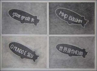 Guns se moque, en même temps qu’on le sent révolté. Dans The World is Yours, il exprime en images la domination économique et l’ambition de s’emparer du monde des quatre grandes puissances émergentes: Brésil, Russie, Inde et Chine. Il traduit dans chacune de leur langue «Le monde est à toi» qu’il affiche sur un zeppelin, comme dans le film Scarface. La vision économique domine: le monde est à eux mais nous, nous sommes à qui ?