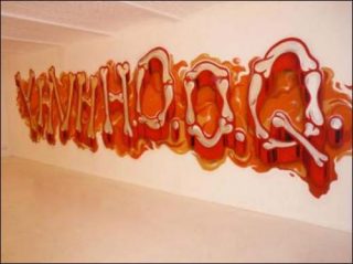 — YHVH HOOQ. Spray painting on the wall-collaboration with EYES-B / Elaine Levy Project 2010. 2 m x 7 m