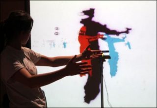 Joseph Hyde présente Me and My Shadow, un projet de téléprésence multisites se déroulant simultanément dans quatre villes européennes connectées en temps réel. Cette installation novatrice est basée sur les technologies de capture de mouvements et consiste en «portails» qui uniront des utilisateurs dans chaque espace par la téléprésence, projetant leurs ombres 3D dans un espace collaboratif créatif.