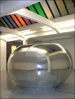 — Untitled, Silence Is Sexy, 2004. Structure gonflable qui respire, 2 ventilateurs, tissus-miroir.