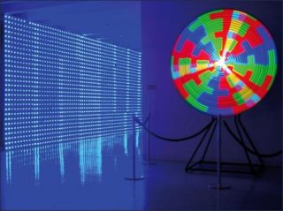 La proposition de cette exposition: «Mécanique de la Lumière» pourrait laisser supposer une «froideur» tant le mot de mécanique relève d’un procédé et d’un processus productivistes qui semblent être aujourd’hui l’un des maux d’un dérèglement général, posé comme «modèle» depuis plus d’un siècle. Ce «système» de SPIM (Structure de Production d’Images en Mouvement) créé par Fred Sapey-Triomphe présente un ensemble d’œuvres (de 2007 à 2012) qui ne sanctifie pas le système «mécaniste». Cette mécanique est à entendre et à regarder comme une méthode d’imageries et de résonances picturales incluant différents types de pièces: installations électroniques, fantaisies et tableaux lumineux…