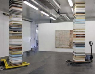 Ce qui frappe d’abord dans le travail d’Estelle Deschamp c’est la multiplicité des matériaux qu’elle fait siens: bois, plâtre, béton, goudron, mousse, plastique, PVC, chutes et rebuts en tous genres sont associés et combinés dans ses différents dispositifs sculpturaux. Les assemblages qu’elle met en Å“uvre peuvent faire preuve d’une remarquable simplicité: accumulation, empilement, stratification, répétitions de motifs à différentes échelles, mais peuvent aussi être associés à des formes plus travaillées relevant de l’ornement classique (marqueterie, moulures…).