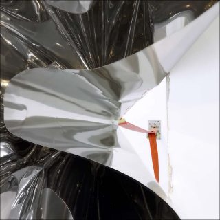 Les sculptures d’un côté et la vidéo et le cinéma de l’autre sont les deux axes de l’œuvre pluridisciplinaire de Florian Pugnaire qui se construit par de permanents va-et-vient entre l’un et l’autre. Les deux médiums se complètent dans une recherche autour des procédés de fabrication d’une œuvre. Dans une sculpture réalisée en 2016, une feuille d’aluminium froissée, comme soufflée par un puissant courant d’air, est retenue par une sangle fixée au mur, elle aussi en tension. L’œuvre est représentative d’une pratique qui évoque les domaines du chantier et de l’atelier pour sonder la notion de work in progress.