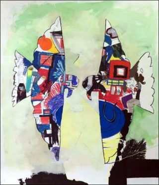 Aux pratiques conjuguées du collage et de l’assemblage, Adam Janes (né en 1976) accorde une place de choix. Ses œuvres en déclinent l’exercice dans la réalisation de travaux qui passent du plan au volume et se donnent à voir comme autant d’icônes qui appartiendraient à une culture marginale. En réalité, son art procède de la combinaison entre des éléments empruntés à différentes cultures populaires et tout un lot de références classiques.