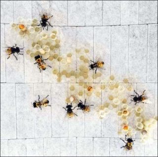 Pour son exposition à la Galerie Mitterrand, Jean-François Fourtou présente Merci Louisette, installation construite à partir d’un amoncellement de meubles de famille en équilibre faussement précaire parasité par des abeilles géantes, des pots de miel, des alvéoles, des stalactites, des ruches et des ramasseurs de miel.