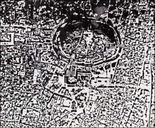 Fidèle à ses préoccupations, le couple d’artiste enrichit ainsi sa pratique artistique de connaissances archéologiques, anthropologiques et historiques, donnant un poids, une teneur et une qualité évidents à leurs travaux. Trois immenses monochromes blancs nous accueillent en prélude de l’exposition, dernières productions du couple Anne et Patrick Poirier. Il s’agit de vues aériennes tirées de Google Map, représentant les ruines de villes mythiques, telle Babylone. Symboles de la grandeur des hommes et des cités magnifiques qu’ils ont su bâtir, ces sites nous renvoient également vers les pires actes commis par l’humanité: la guerre, la violence aveugle, la destruction, et dénotent ainsi les contrariétés de notre humaine condition.