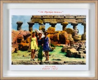 Puis, à ces grands formats blancs, succèdent des photographies aux dimensions plus réduites, rehaussées à la couleur. Un changement de rythme s’instaure donc. La série Rome, datée de 1988, transforme à nouveau notre vision du réel. Les couleurs saturées des photos donnent un aspect fictif à la Ville éternelle, où le couple Anne et Patrick Poirier a d’ailleurs résidé au début des années 1970 à la Villa Médicis. La série Les Paysages Révolus fonctionne quant à elle sur la même esthétique, mais change radicalement de ton. Ici, on rencontre plus de légèreté et d’humour que précédemment. On y perçoit des bandes ou des familles de touristes recolorées, posant fièrement devant les ruines d’un site historique sicilien, marquant ainsi les débuts du tourisme culturel de masse en 1973.