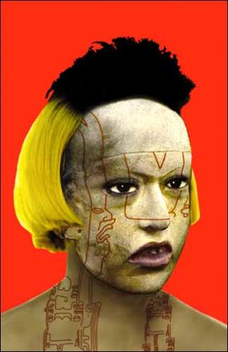 Selon des modalités multiples et variées. La séquence, par exemple : lors d’un Strip-tease occasionnel, Orlan-Madone, baroque et nourricière, se métamorphose, image après image, en une Vénus botticellienne, profane et érotique. La photographie, comme modèle, et objet de morphing et de fusion, est à la base de toutes les transformations, virtuelles ou réelles, de l’apparence physique de l’artiste. La série des Self-Hybridations africaines, de 2003, est à cet égard stupéfiante de familière étrangeté. Orlan, tempes bossues comme signature, y irradie de son regard limpide, photographiquement inaltéré, des visages-masques, venus d’autres mondes.