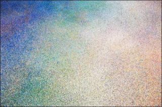 A travers sa production plastique, se développe à la fois un effet «boule de neige», un enchaînement d’émotions et de temps vécu. A travers cette entreprise tout comme Meteor, 2005, (mandala-paillasson monumental) il déconstruit le réel, en le morcelant et en le pixellisant; il construit des zones réceptrices vibrantes, des oscillations picturales lumineuses, résurrections d’images historiques. C’est une nouvelle cosmogonie qu’il nous livre, de la poussière d’étoiles, une cartographie de l’irréel dans laquelle chacun peut s’immerger et se projeter.