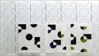 Les grands lés collés au mur chez Michel Rein singent des planches d’imprimerie prêtes à être travaillées. Sauf que celles-ci se superposent, se répètent et font apparaître des signes virtuels (les traits de coupe et les repères de montage par exemple) comme d’insurmontables pastilles pour le regardeur.