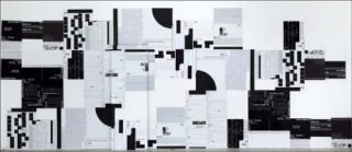 En entrant dans la galerie, le spectateur est accueilli par de grands papiers collés au mur, sorte de mosaïque de formes répétant à l’envi des codes graphiques et des phrases tronquées. Plus on s’avance dans l’espace, plus des saillis surgissent de cette confusion: de grandes toiles accrochées au mur ou d’autres plus loin en miroir servent le même usage mais dans un conscient décalage. A l’écart, une toile simplement posée sur une cimaise montre un poster décalé représentant un appareil à imprimer.