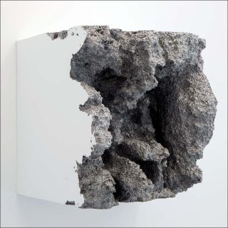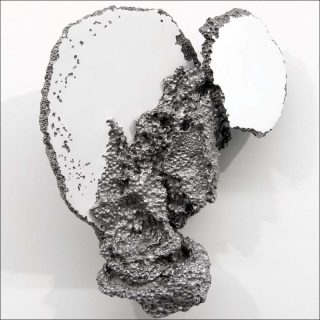 L’œuvre intitulée Instant Gratification résulte d’une projection de bronze liquide sur le sol puis accrochée au mur une fois refroidie, prenant alors l’aspect d’un enchevêtrement de fils formant une plaque, telle un tableau. L’image d’un geste figé dans son élan que renvoie cette projection volatile fixée dans un rendu solide est récurrente dans la démarche de Michel François. Les œuvres forment un pont entre ce qui l’art en devenir et l’art achevé, elles donnent le statut d’art à tous les mouvements qui le composent. Des plaques de tôle, sur lesquelles une myriade de cercles ont été créés à l’aide d’un chalumeau sont ensuite polies, immobilisées dans leur brillance. Des blocs de plâtre aléatoirement tirés d’un bac sont présentés une fois poncées et fendus. Ces pièces ne tirent pas leur valeur d’œuvre d’un quelconque processus créatif mais seulement de leur forme finale. La rupture artificielle du cours naturel de transformation des matériaux fonde l’œuvre d’art.