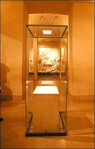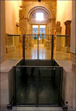 Les quatre emplacements que vous avez retenus pour Contrepoint dans le département des Sculptures sont une vitrine vide au cœur de la crypte Girardon (sculptures du XVIIe), le plafond de la salle Michel Colombe (sculptures du Moyen Âge), le tympan de la Porte d’Estagel (art roman, salle des sculptures du VIe au XIIe siècle) et un bas-relief provenant du décor du Pont au Change (sculptures françaises du XVIIe siècle). Vous intervenez ainsi sur des lieux de passage. Pourquoi ce choix?