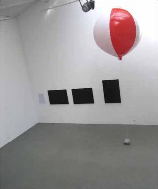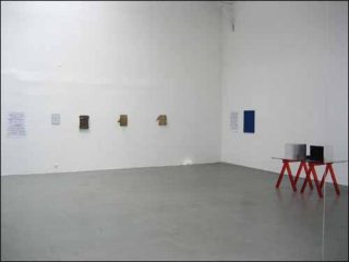 Au mur, trois grands formats noirs et un autre bleu Klein captent immédiatement le regard tandis que le staccato d’une installation de Krebber, Projection (2006) — un appareil passant en boucle les diapositives de ses œuvres — bat la mesure.
