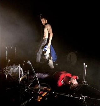 Pierre Rigal imagine un format hybride où la musique rock balance vers différents univers et globalise tous les éléments que composent un spectacle; chant, musique, dramaturgie, danse lumière, installation plastique et scénographie…