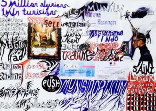 Sa «poésie visuelle» apparaît également sous la forme de carnets de dessins et de collages, combinant des recherches artistiques et linguistiques et commentant la manipulation des images par les médias.