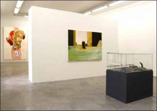 Il faut descendre au sous-sol de la galerie pour découvrir la vision de la troisième femme. Sur toute la surface des murs vieux rose des coulées de peinture blanche rappellent la patte de l’action painting, mais aussi des traces d’éjaculation. La femme, représentée par un petit portrait placé en retrait, dans une alcôve, regarde cela de loin, l’air innocent. A la femme des apparences et à celle des plaisirs sexuels succède la femme énigmatique et inatteignable. Trois femmes qui ne sont donc pas sans rappeler celles qui ont marqué profondément Roger Vadim.